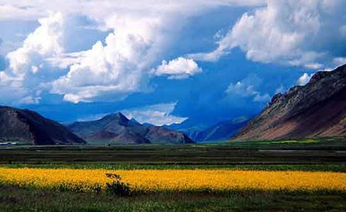 猶如林中出浴的少女,魯朗海拔3700米,是一片狹長的高原山地,長約15公里。兩側(cè)青山由低往高分別由灌木叢和茂密的云杉和松樹組成“魯朗林!;中間的草甸中,溪流蜿蜒,泉水潺潺,草坪上野花怒放盛開;云霧、林海、田疇、牧場、流水、人家、牛羊…… 那望不斷的連綿大山,那看不夠的松濤云海,那聽不厭的江河奔流,凡是目睹這壯景的人,無不蕩氣回腸,激情飛揚(yáng)。真正是雪山林海,云濤彩霞,一嶺四季,十里九景……