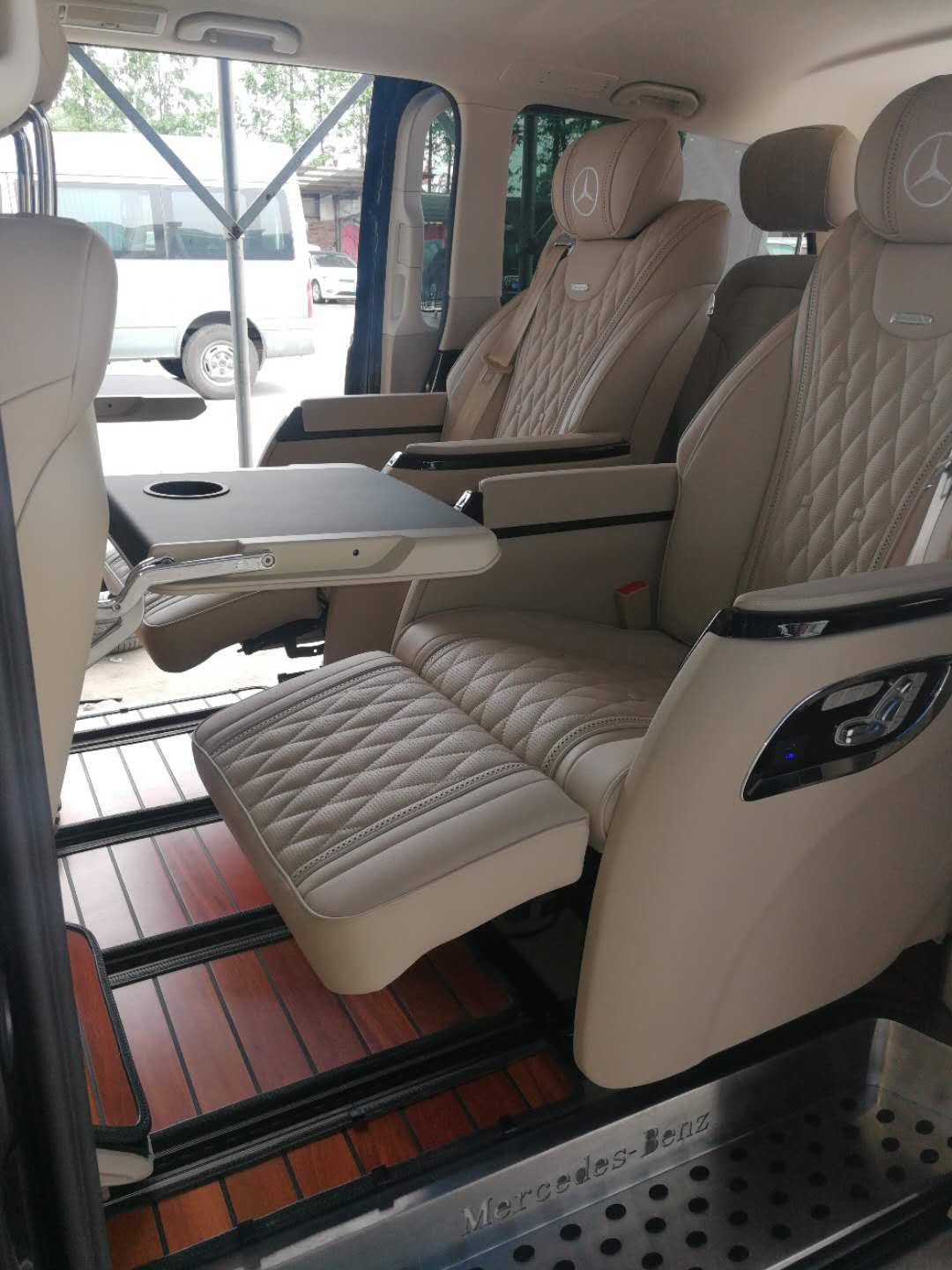 中間兩座為改裝座椅,可按摩、可360度旋轉(zhuǎn),高檔舒適,尊貴無匹